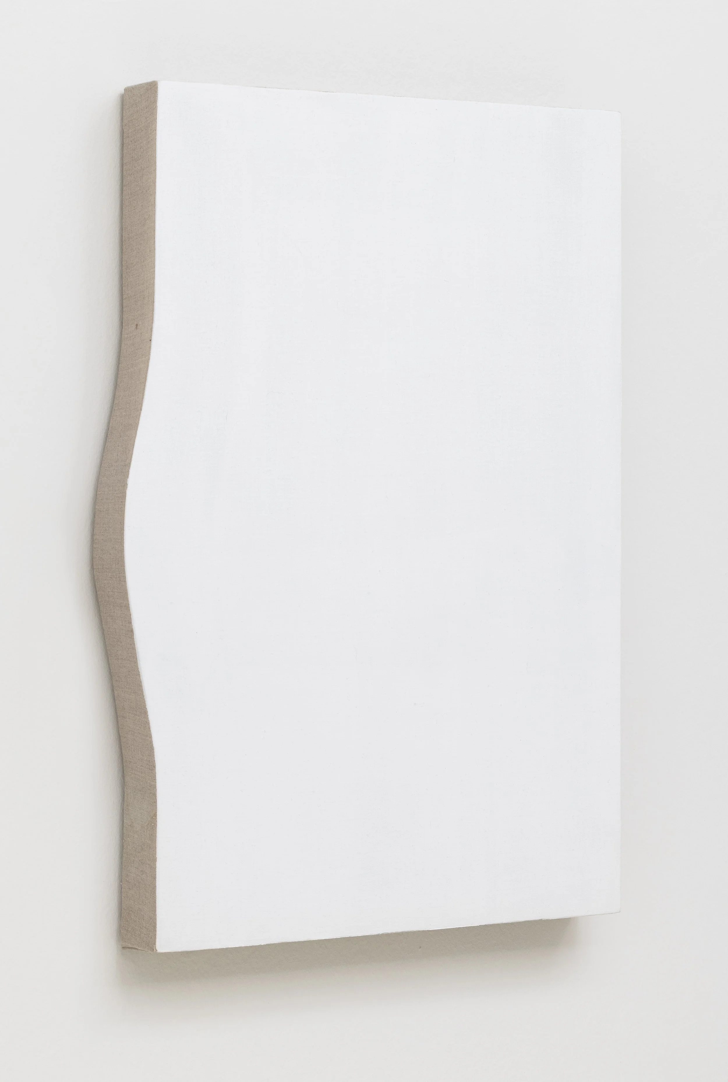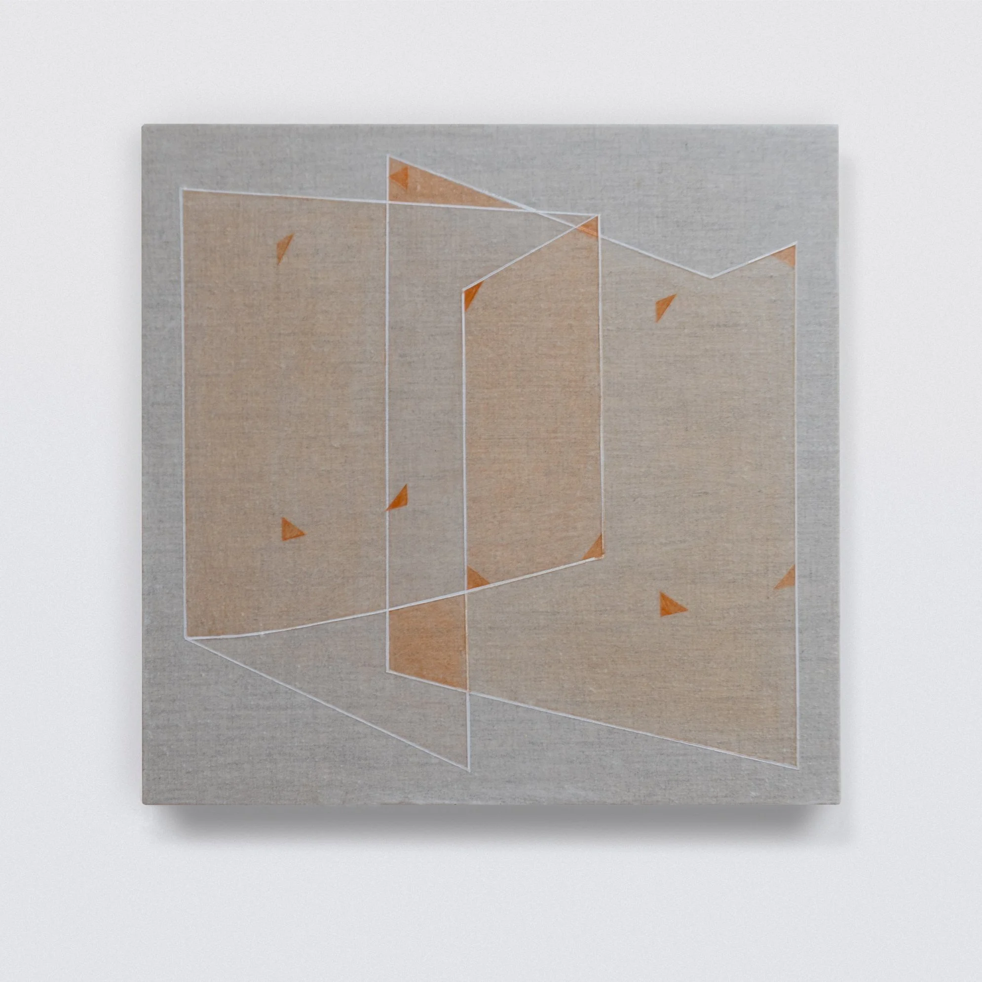 Swivels explores the negotiation of painting as object, maintaining an ongoing dialogue with flatness and restraint. Mounted on steel brackets, these shaped paintings rotate, revealing their various facets and components. While sculpture is often apprehended in relation to the human body, this work proposes a more mutable encounter—its capacity to swivel suggests a quiet choreography of confrontation and withdrawal. The tension of such controlled movement, especially in close proximity to the wall, becomes intrinsic to the work’s affect.